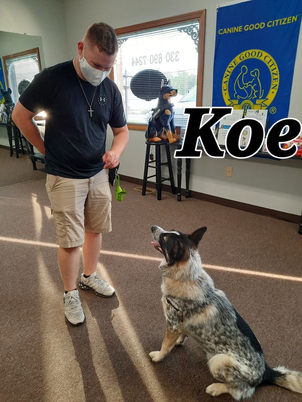 KOE a 9 month old part German Shepherd and his owner did an outstanding job mastering the Obedience Skills Class while training at Kristy's K9 Training.